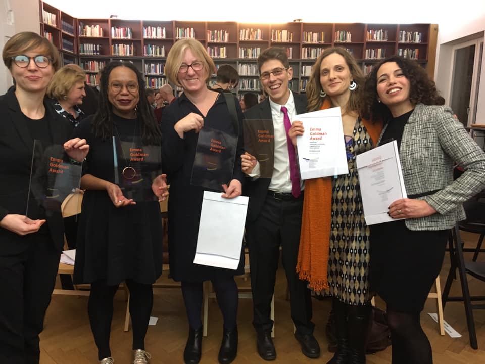 Along with Krizsan, the Emma Goldman Awards went to Akwugo Emejulu, Professor of Sociology at Warwick University, Amade M’charek, Professor of Anthropology of Science, University of Amsterdam, R. Lucas Platero, Juan de la Cierva Researcher at the Universidad Autonoma de Barcelona and director of publications for trans* studies at Bellaterra Publishing House, Marta Rawluszko, Assistant Professor at the University of Warsaw and cofounder of the Feminist Fund in Poland and Rossella Ciccia, Lecturer in Social Policy, Queen’s University Belfast and Marie-Sklodowska-Curie-Fellow, Department of Political and Social Sciences, Scuola Normale Superiore, Florence.